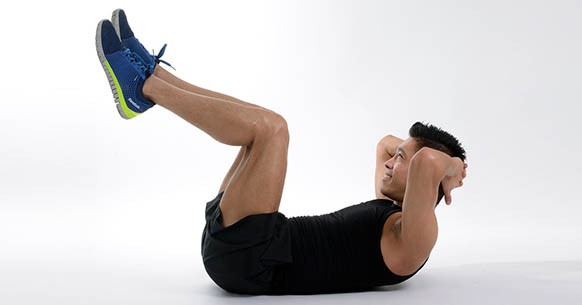 Per eseguire alcune sequenze di “crunch” si parte da supini, con le ginocchia piegate e le piante dei piedi poggiate a terra. Le mani devono essere portate dietro la testa tenendo i gomiti aperti, flettendo il busto fino a trenta gradi ed evitando di sollevare da terra la zona lombare in modo tale da non sforzare la colonna. Per garantire il mantenimento di una postura corretta, inoltre, è necessario fissare un punto sul soffitto senza piegare il collo in avanti.
