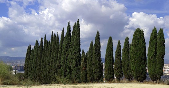 Tra gli alberi più diffusi a questo scopo, vi sono certamente alcune varietà di cipresso – il Cupressus sempervirens, il Cupressus arizonica e il Cupressocyparis leylandii fra i tanti – la Cryptomeria japonica, l’eucalipto e l’Olea europea, una pianta molto diffusa in Sardegna e nota anche come ulivo cipressino. Sebbene il ricorso non sia così frequente, si possono realizzare frangivento anche con l’alloro, soprattutto per le siepi, il pioppo nero e la lentaggine.