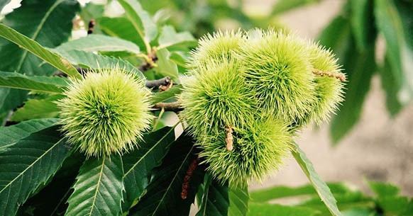 Raggiunge anche i 30 metri di altezza e popola generalmente i boschi di latifoglie, crescendo rigogliosa mente su terreni non calcarei ma freschi. Il castagno è longevo, ha una corteccia liscia e foglie lanceolate a margine seghettato. Per quanto riguarda i fiori, quelli maschili sono bianchi e raggruppati in glomeruli mentre quelli femminili appaiono racchiusi in brattee e isolati. Il frutto del castagno è tondeggiante e marrone, lucido e peloso e racchiuso in un riccio.