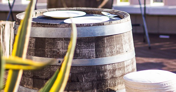 In alternativa ai cavalletti da pittore si possono usare anche due botti, da rendere ancora più eleganti riciclando un piano in vetro di un precedente tavolo, del marmo oppure del legno greggio. L’unica accortezza è di utilizzare, qualora si prediliga il vetro o il marmo rispetto al legno, dei piedini antiscivolo oppure a ventosa per la superficie superiori delle botti, affinché il piano aderisca e rimanga stabile. D’altronde, a meno che non sia già preforato, il vetro non permette l’impiego di viti e chiodi.