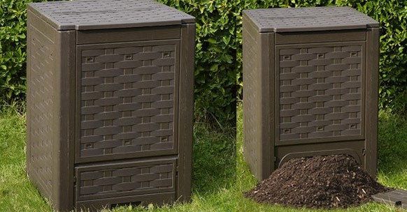 Per chi si avvicina per la prima volta all’universo del compostaggio, una soluzione versatile e molto facile da usare è proposta da Toomax, con un composter perfetto per il giardino date le dimensioni abbastanza contenute. Questa compostiera misura infatti 60x60x83 centimetri e garantisce la massima resistenza agli agenti atmosferici, grazie al materiale in polipropilene. La sua decorazione in simil-rattan, abbinata a una capienza di ben 300 litri, permette di inserirla in modo armonioso nell’arredamento da giardino, data la sua eleganza.