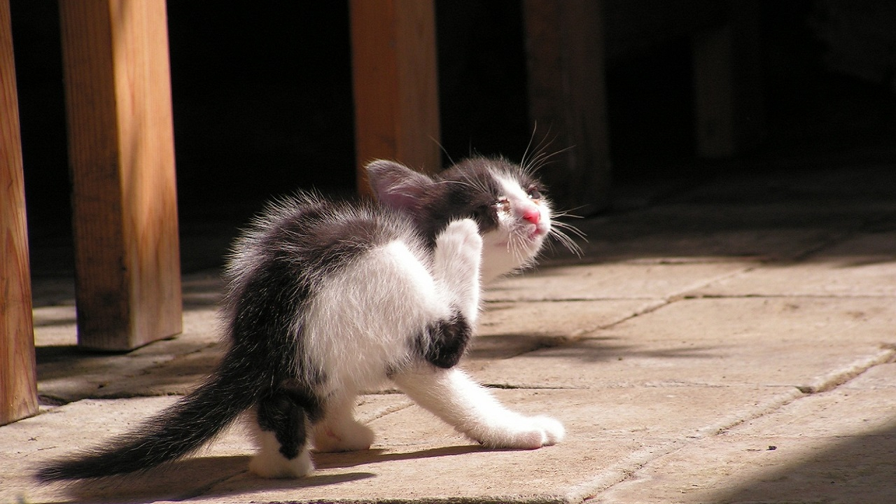 - prurito più o meno intenso: il gatto lo manifesta leccandosi troppo, grattandosi con insistenza o mordicchiandosi. Anche un grooming eccessivo può essere la spia di un possibile prurito