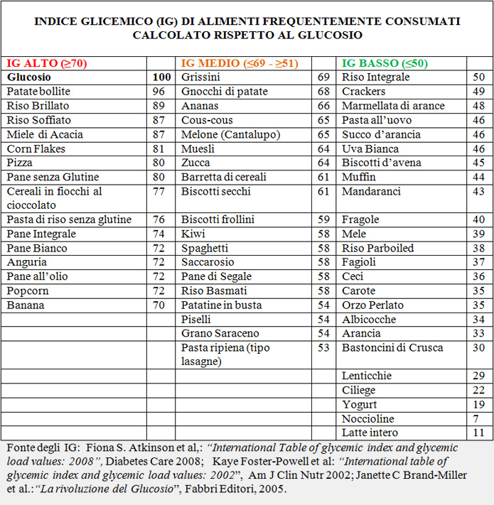 Tabella alimenti indice glicemico