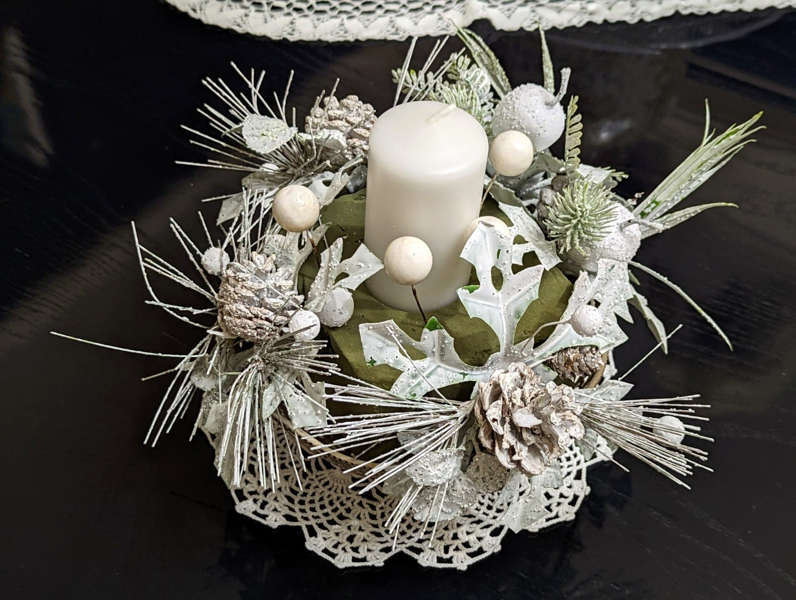 O ancora personalizzarlo ulteriormente cambiando il colore delle candele e spruzzando, perché no, le pigne con una vernice spray che si addica meglio al vostro arredamento o alla mise en place che avrete scelto.