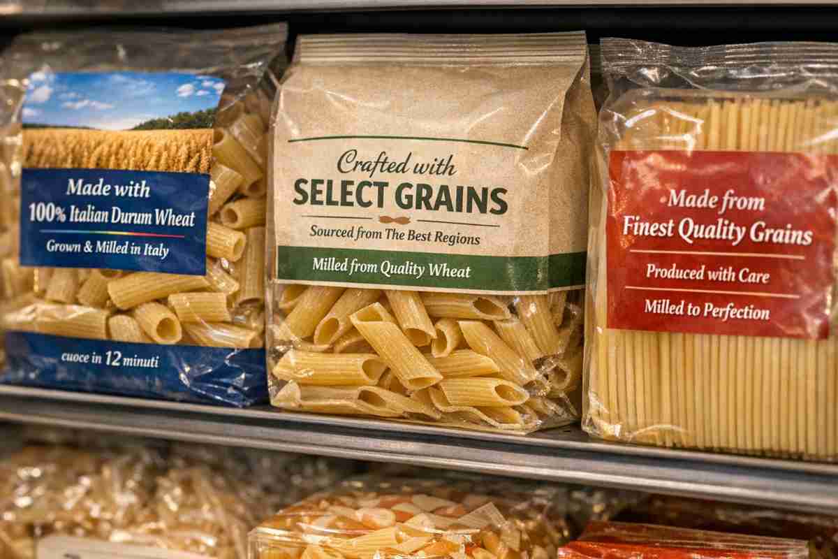 La pasta resta uno di quei prodotti che finiscono nel carrello quasi in automatico. E proprio per questo l’etichetta, spesso, passa in secondo piano, anche se dice molto più di quanto sembri. Sugli scaffali italiani si trovano marchi storici e linee “premium” che usano grano duro italiano, miscele europee o extraeuropee. La differenza, però, non sta solo nella qualità percepita: conta anche il modo in cui l’origine del grano viene dichiarata, nascosta o trasformata in messaggio commerciale.