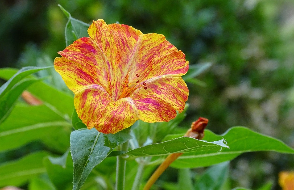 Un’altra pianta da giardino assai diffusa, ma tossica per gli animali è la Bella di notte. La Mirabilis jalapa è una pianta erbacea tuberosa della famiglia delle Nyctaginaceae. Originaria del Perù, sono tossiche le radici e i semi in quanto contengono trigonellina.