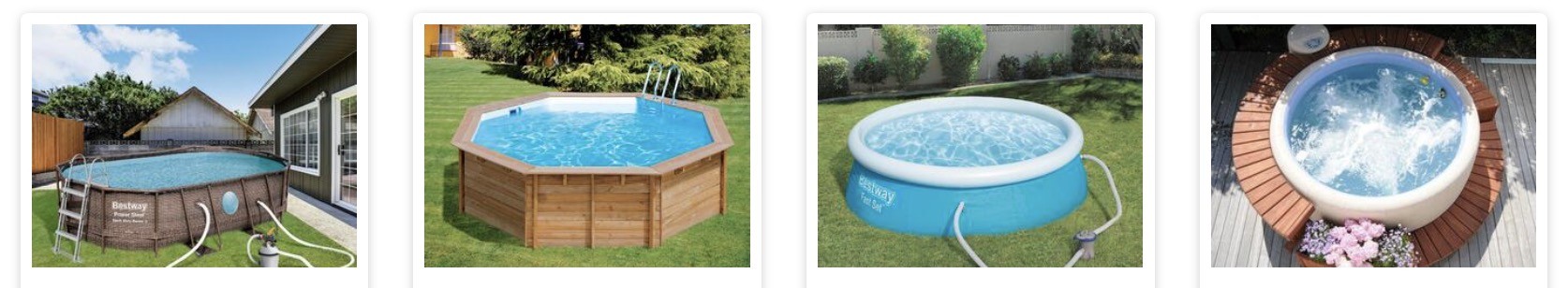 - Piscina Fuori terra: Possono essere anche molto grandi, ma stando fuori terra non richiedono né posa né scavi. Ovviamente bisogna scegliere una superficie perfettamente livellata e in piano. È una via di mezzo tra le dimensioni e il confort della piscina interrata, ma con costi molto più abbordabili. Ne esistono di stagionali (ideale come piscina da esterni da usare nel periodo estivo; a fine stagione si smonta), rigide (soluzione ideale per piscine di medie e grandi dimensioni da usare con frequenza e da lasciare in giardino tutto l’anno) o SPA riscaldate con idromassaggio (relax e benessere, perfetta sia per l’estate che per l’inverno).