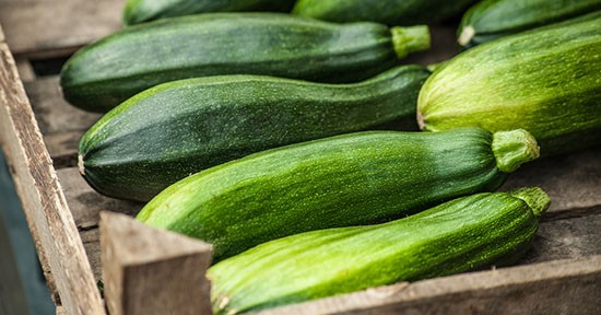 Fresh healthy green zucchini courgettes in brown wooden box on the marketplace via Shutterstock Per la preparazione di circa dieci muffin salati vegani alle zucchine, occorrono i seguenti ingredienti: