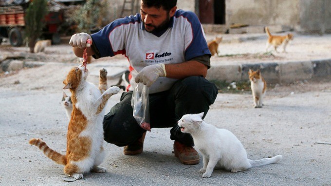 Colpisce la storia di un uomo, un autista di ambulanza, che in Siria dedica del tempo e delle cure amorevoli a un gruppo di gatti randagi. In un territorio sofferente e frustato a sangue dalla guerra, tocca il cuore il gesto di questa persona, che non dimentica una colonia felina senza più aiuto. Alaa, questo il suo nome, spende circa 2,50 sterline al giorno in carne fresca da distribuire all’interno del corposo branco di mici abbandonati.